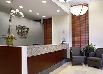 接待处的环境十分重要,既要让访客感到受欢迎,也要展现公司的个性。前台作为企业的窗口,不仅展示着企业的实力,更突显企业本身的文化内涵,需要结合公司整体定位与装饰特点来制定相应的照明方式。照明的整体亮度要求很高,可采用筒灯作为基础照明,同时以导轨射灯对背景形象墙重点照明,达到突出企业形象、展示企业实力的效果。